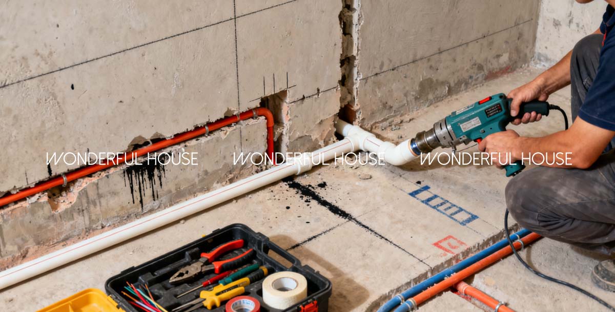 水電改造是隱蔽工程核心,直接影響日後居住體驗。香港水電收費高昂,設計時需規劃節能佈局,廚房與衛生間盡量集中佈管,減少管線浪費。施工時水管需做加壓測試(通常為 0.8MPa,保壓 30 分鐘),電線選用阻燃線,插座需符合香港 BS1363 標準,並在櫥櫃、床頭等位置預留充足插座,避免日後牆面開槽補線。完成後繪製詳細水電圖,便於日後維修。