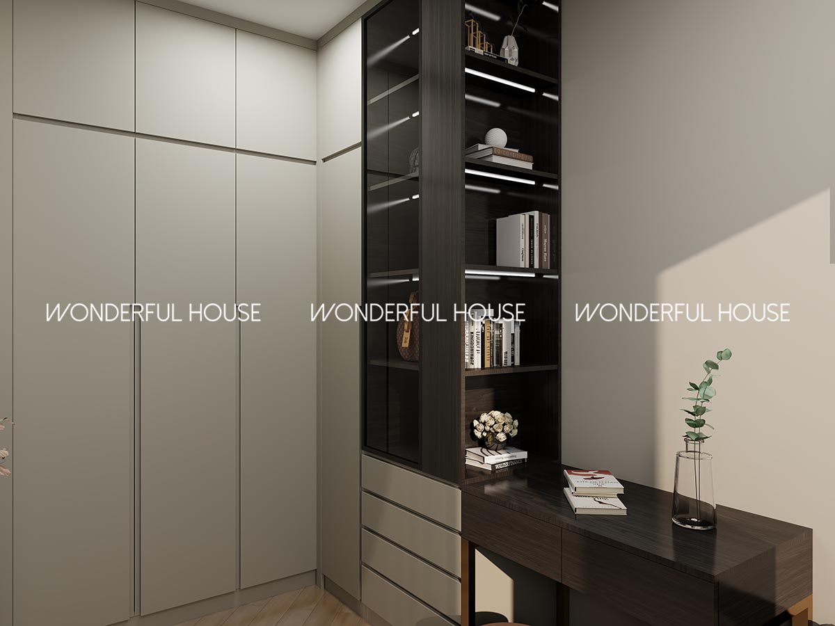 飄窗位改做懸浮梳妝台 + 儲物地台,化妝時候對住窗外景色超療癒,地台塞 3 床厚棉被都唔成問題