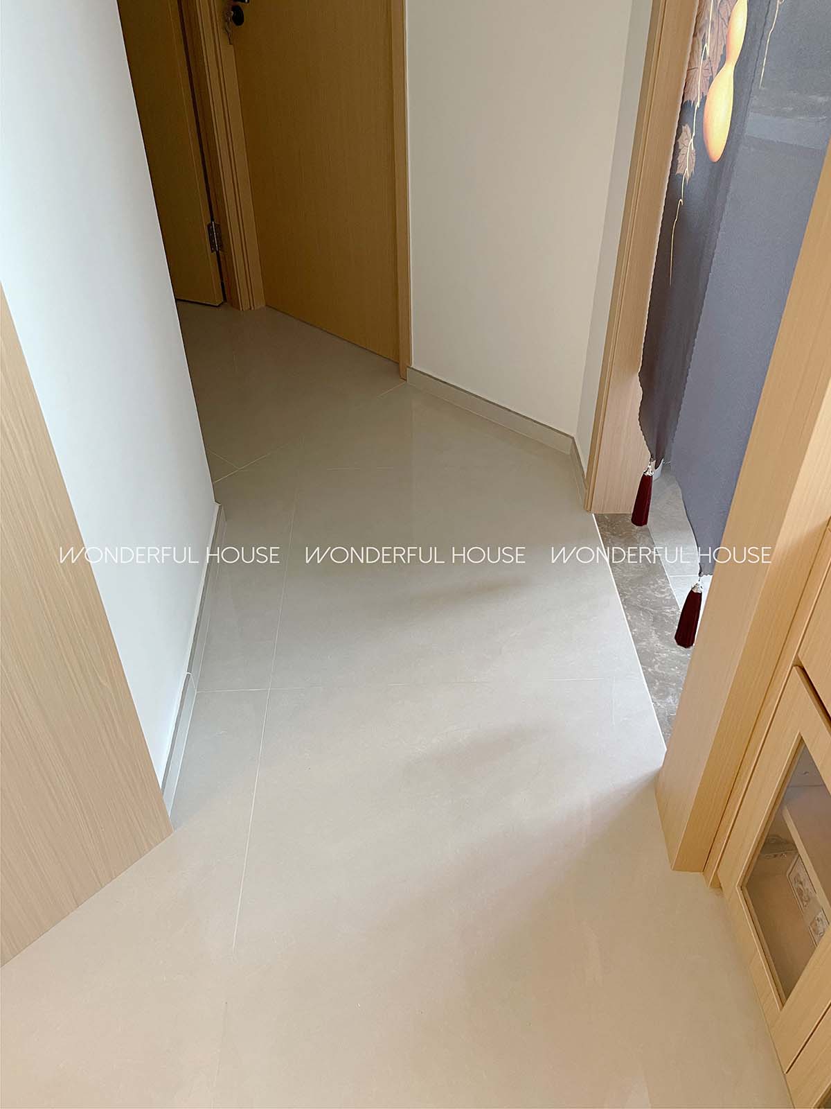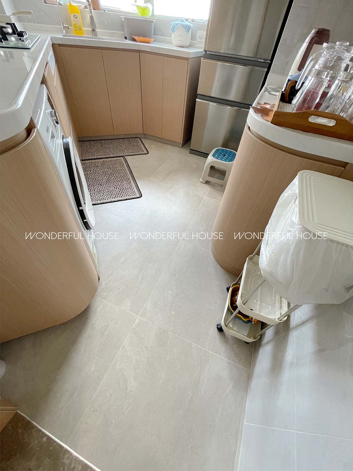 瓷磚鋪設更是精工的體現。廚房與衛生間地面、牆面選用防滑耐磨的瓷磚,鋪貼時嚴控縫隙大小,做到視覺無縫,不僅清潔時更省心,沒有藏污納垢的死角,還讓空間整體感更強。客廳與臥室的瓷磚則搭配原木風調性,淺色底紋與木質紋理呼應,腳感舒適且耐用,即使日後頻繁走動,也不易出現劃痕或變色,為居家生活減少後顧之憂。