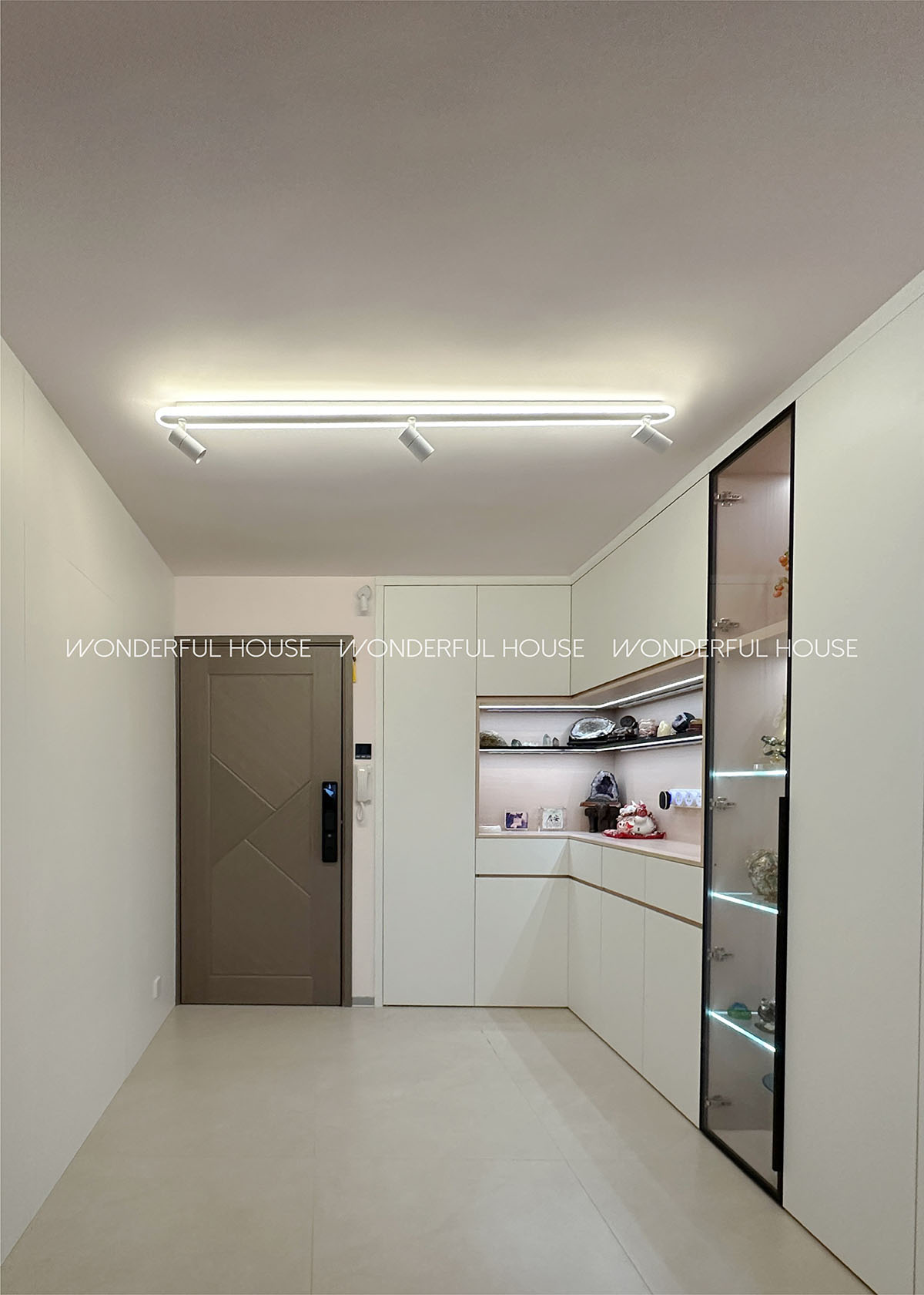 - 展示櫃燈帶:玄關玻璃櫃內藏燈帶,擺件瞬間變成裝飾焦點。