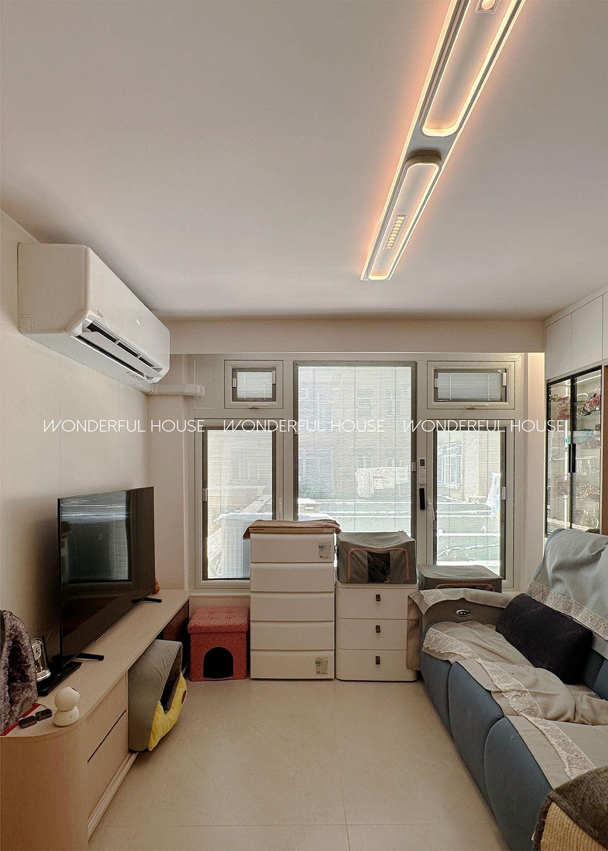 - 線性燈貫穿全屋:客廳、玄關天花用長條線性燈,暖光氛圍感拉滿,仲自然劃分空間;